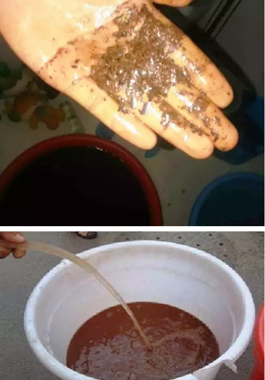 圖為使用了多年的暖氣片拆除后內部的鐵銹與水垢。